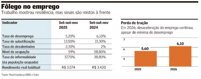 Após quatro anos de grandes avanços, batendo e renovando recordes da série histórica, o mercado de trabalho brasileiro deve seguir resiliente em 2026, mas mostrar sinais mais claros de fadiga e piora, ainda que sem grande intensidade.